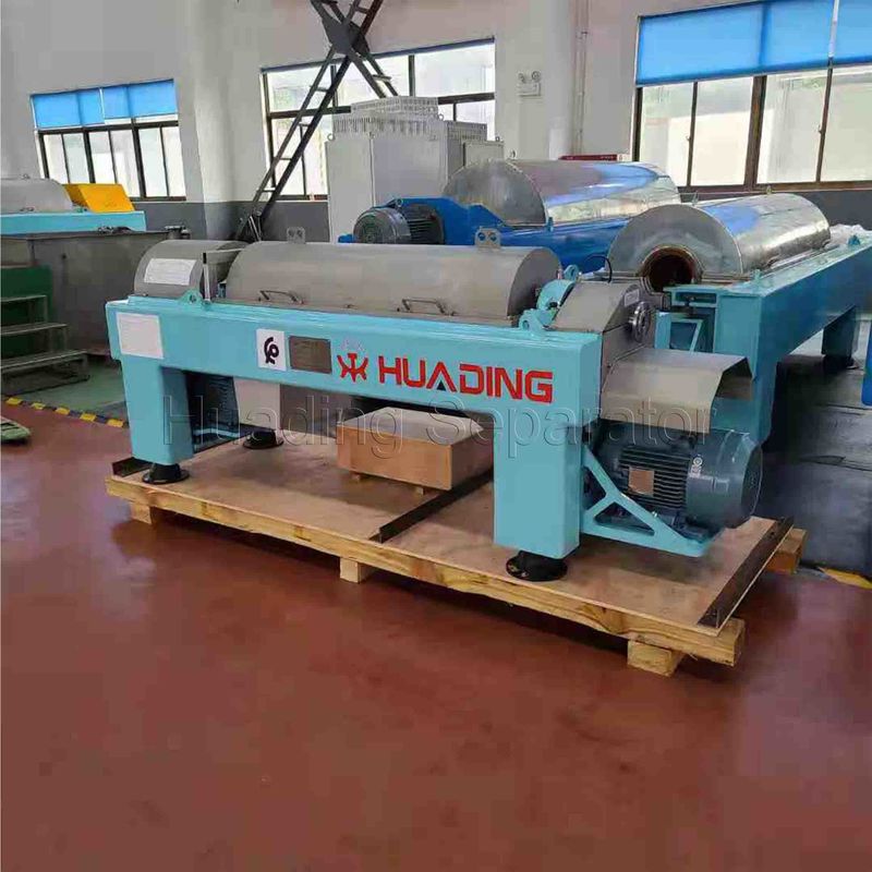 油田の供給は供給管からの運搬ねじの内部シリンダーに引き続いて与えられ、次に加速の後でボールに入る。遠心力分野の行為の下で沈殿物の層を形作るために、より重い固相はボールの壁で集まる。運搬ねじは回転ボールの円錐形の端に集められた固相を時々押し、機械からスラグ排出の港を通して排出する。より軽い液体段階はボール ボールの大きい端に流出の港からの流出する、形作り液体の排出の港を通した機械から排出される内部の液体リングを。三相デカンターの遠心分離機は絶えず材料に与え、全速力で分け、洗浄し、排出できる。それに密集した構造、連続操作、安定した操作、強い適応性、大きい生産能力および便利な修理の特徴がある。より0.005mmのおよび集中範囲が2-40%懸濁液である大きい粒度の固相を分けることは適している。